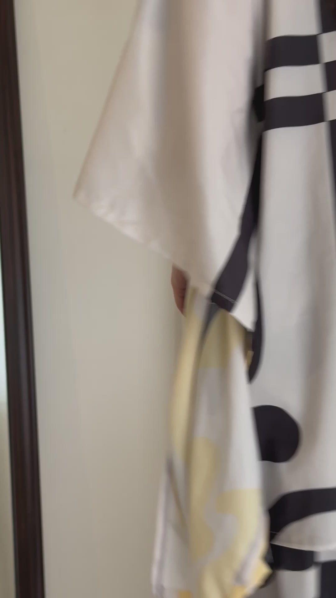 Make a bold yet refined statement with this Black & Ivory Abstract Silk Co-ord Set, an effortless blend of modern art and timeless elegance. Crafted in luxurious satin silk, the flowing kaftan-style top and matching wide-leg trousers feature fluid, hand-drawn abstract patterns in black, ivory, and soft yellow — creating a striking visual rhythm.