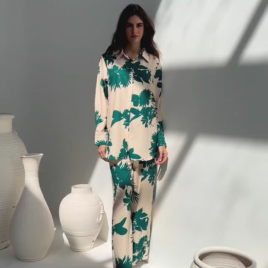 Botanical Bloom Co-ord Set – Effortless Chic in Emerald & Beige