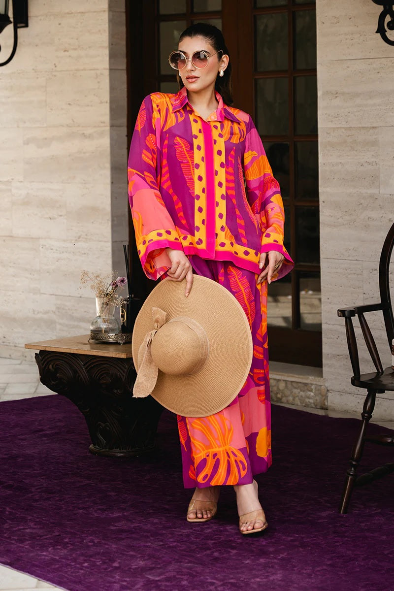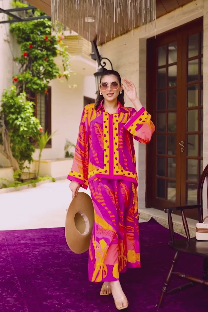 Crimson Tropic Printed Co-ord Set – Fuchsia & Tangerine