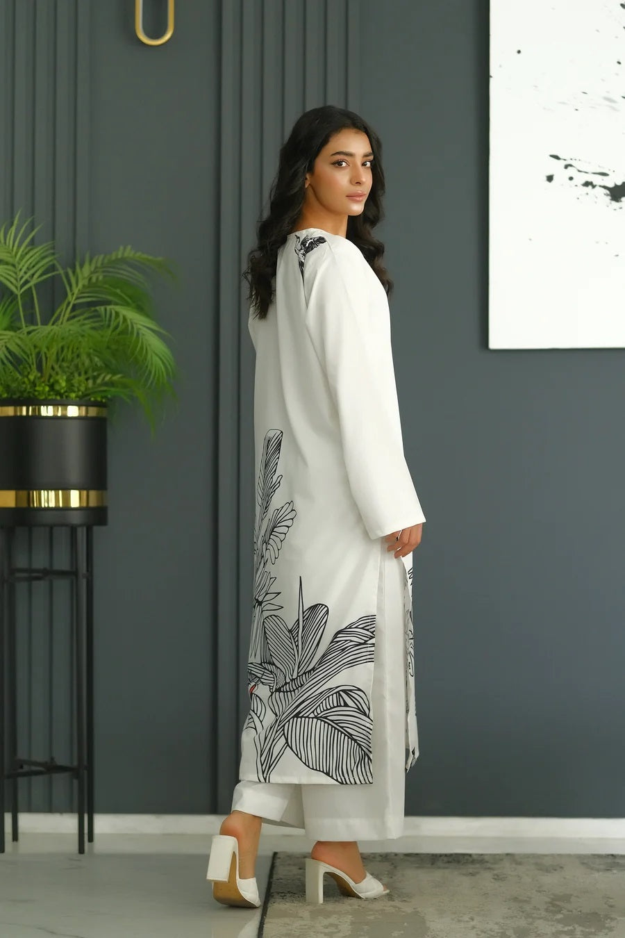 Eden Noir Co-ord Set – White with Black Botanical Print