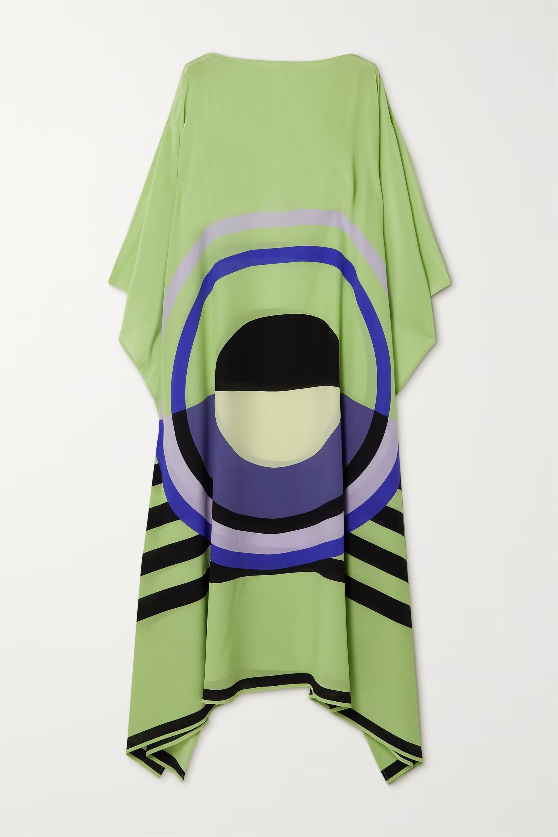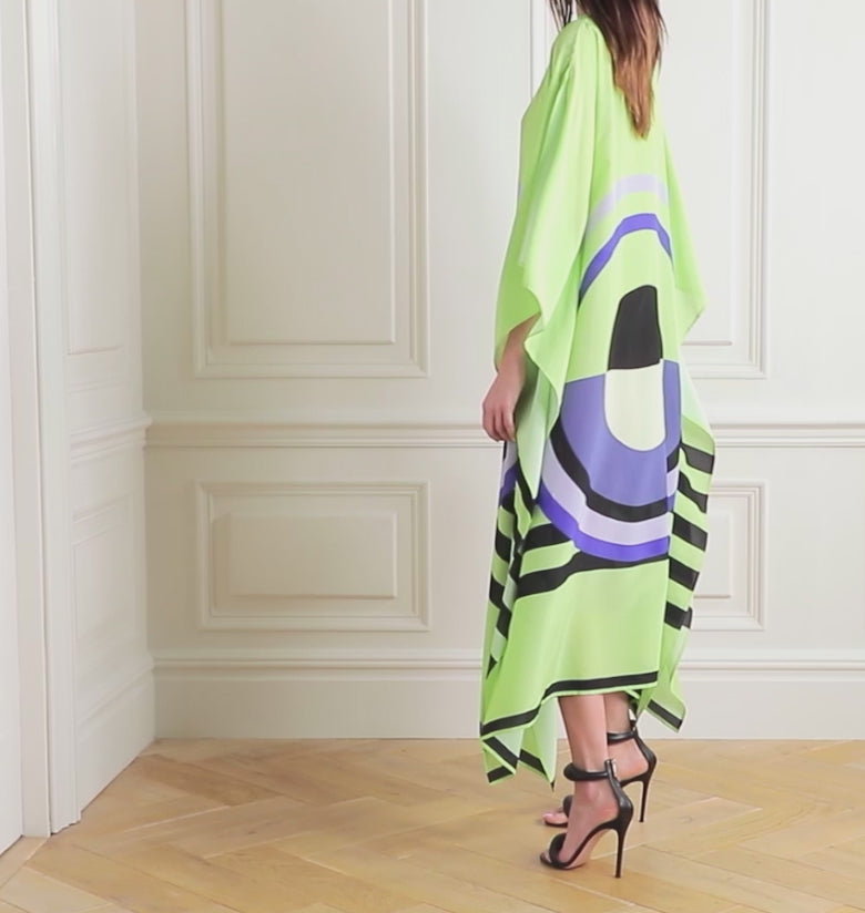 Lime Mirage Silk Kaftan Dress – Bold Geometry, Effortless Elegance