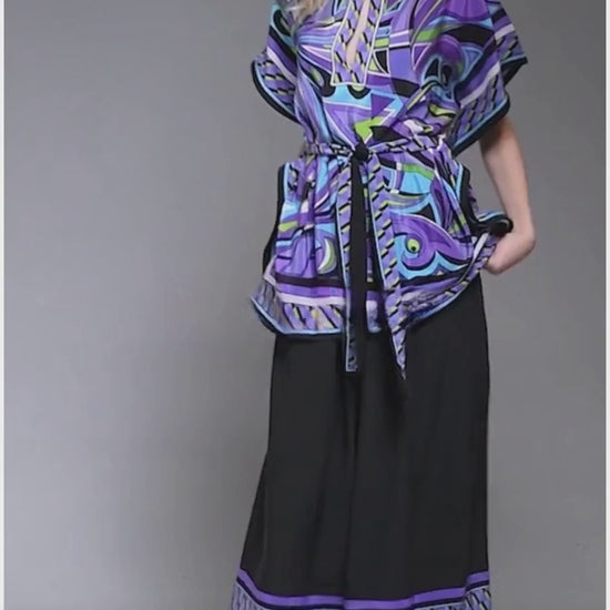 Midnight Mirage Printed Kaftan Co-ord Set – Purple & Teal