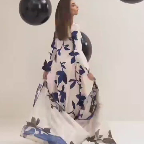 Step into elegance with the Midnight Petal Kaftan Dress by LayrLuxe — where timeless florals meet modern grace. Crafted in an ethereal ivory base adorned with bold midnight-blue blossoms, this kaftan-style dress flows effortlessly with every step, exuding sophistication and serene confidence.