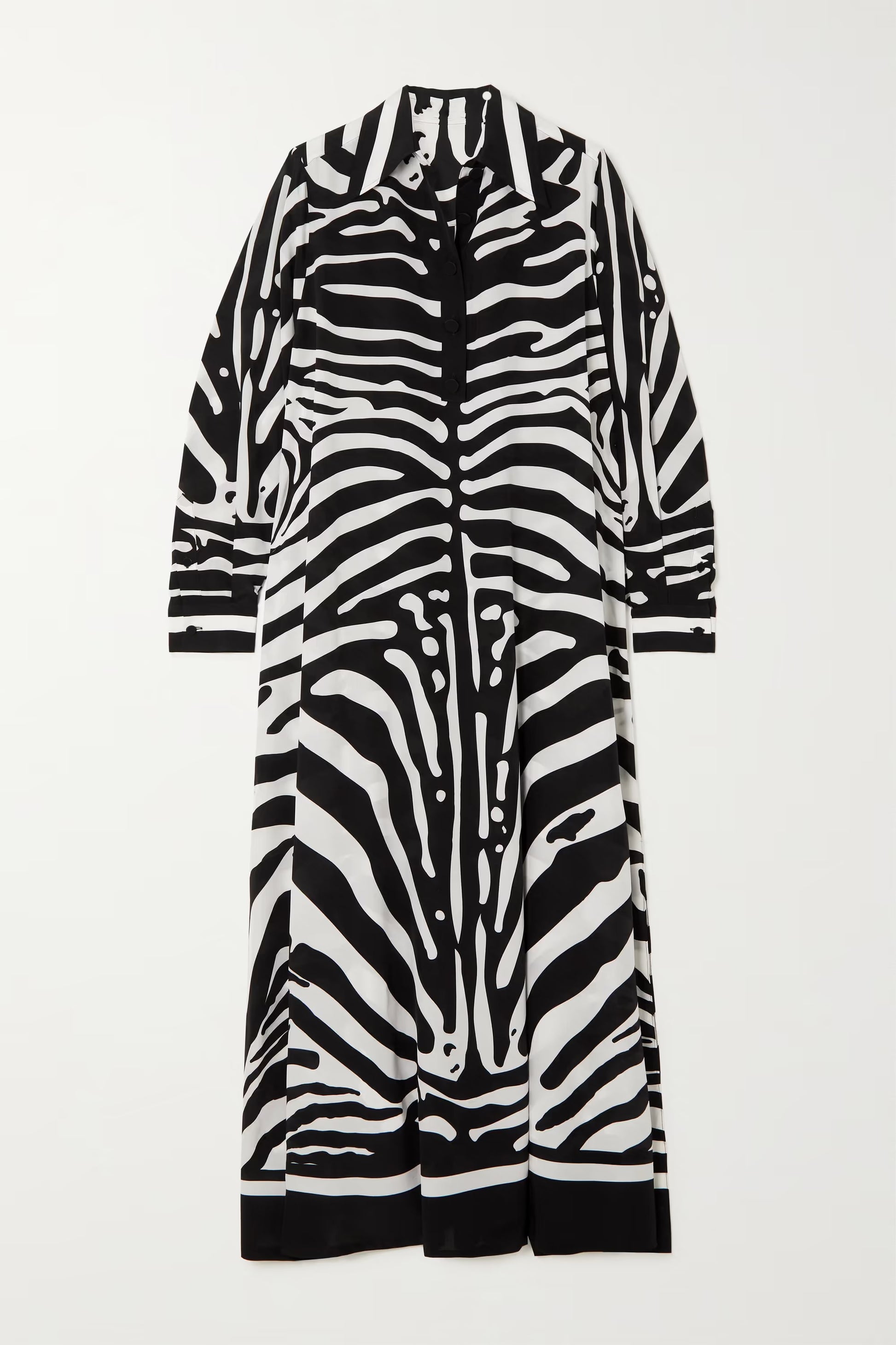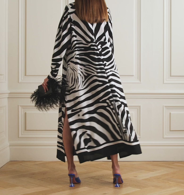 Unleash your inner sophistication with the Monochrome Mirage Satin Shirt Dress from LayrLuxe. This captivating piece features a striking black-and-white zebra-inspired pattern, masterfully blended with the fluidity of premium satin for an effortlessly luxe finish.