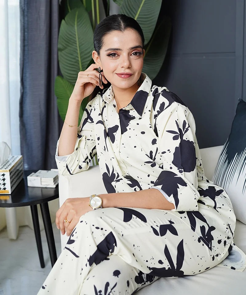 Redefine minimal sophistication with the Monochrome Muse Co-ord Set from LayrLuxe. A perfect fusion of art and elegance, this statement ensemble features bold black floral and ink-splatter prints over a crisp ivory canvas — capturing the essence of effortless modern style.