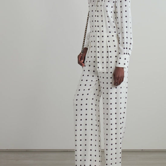 Elevate your wardrobe with the timeless charm of the Monochrome Polka Dot Co-ord Set from LayrLuxe. Designed in elegant white with bold black dots, this set strikes the perfect balance between vintage sophistication and modern minimalism.