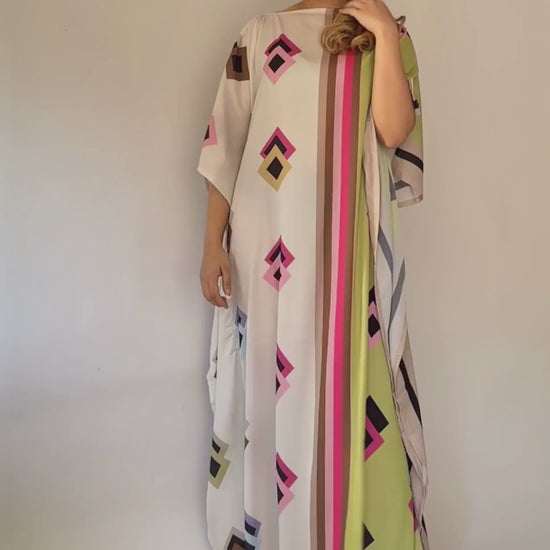 Neon Geo Silk Kaftan Dress – Vibrant Luxe Edition